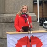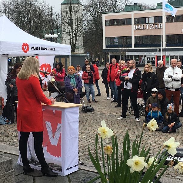 Trots att vi arrangerade det mesta i sista stund, blev årets förstamajfirande mycket bra. Hotande regn höll sig borta, lugna vindar och hyfsat många deltagare. Årets insamling gick till Majblomman och inbringade 1 122 kr som kassören omgående kommer betala in. Talare i år var vår riksdagskvinna Linda Snecker, vår gruppledare i kommunfullmäktige Kerstin Lundberg och från den fackliga sidan Annika Onttonen. Framgångarna i riksdagsarbetet berördes liksom kampen för jämlikhet och jämställdhet, sex timmars arbetsdag och rättigheterna på arbetsmarknaden.